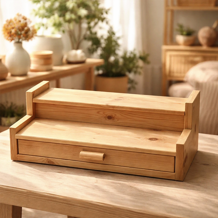 این استند چوبی دکوراتیو، ترکیبی هوشمندانه از سادگی، نظم و زیبایی است. طراحی دوطبقهی آن، فضای مناسبی برای چیدمان اکسسوریهای دکوراتیو، لوازم رومیزی یا وسایل شخصی فراهم میکند و در عین حال، ظاهر مینیمال و گرم چوب طبیعی را حفظ مینماید.