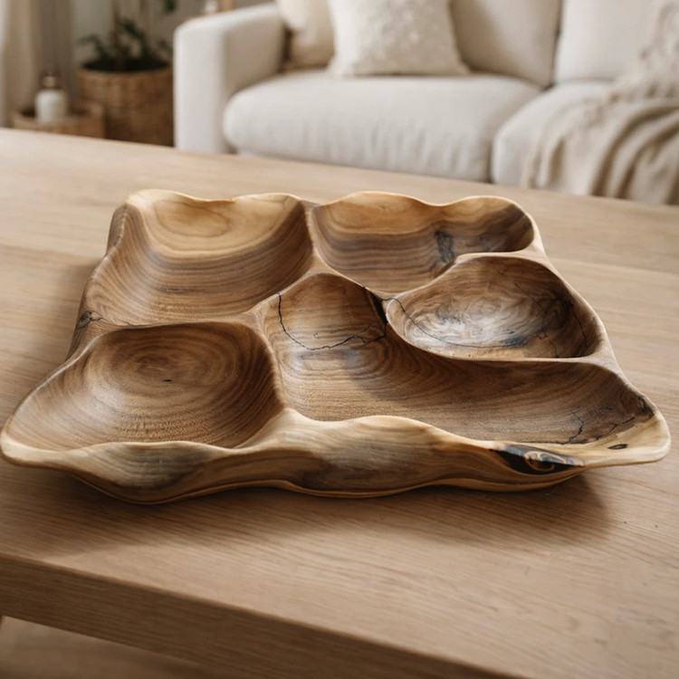 اردوخوری چوبی دستساز چندخانه | ظرف پذیرایی چوب طبیعی